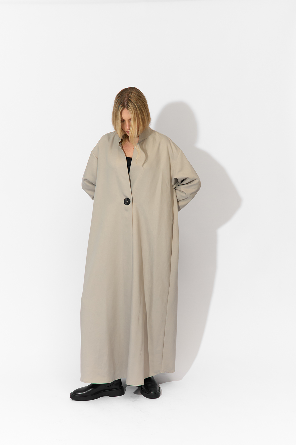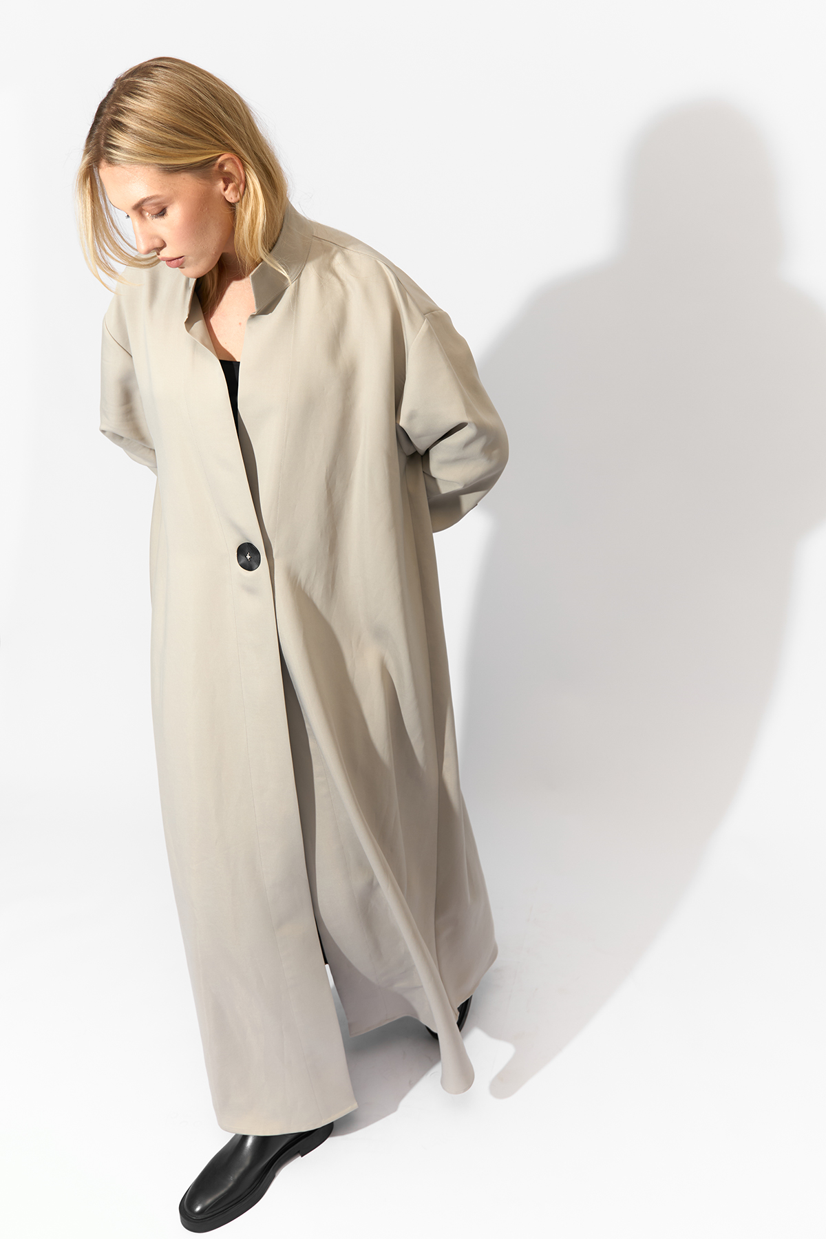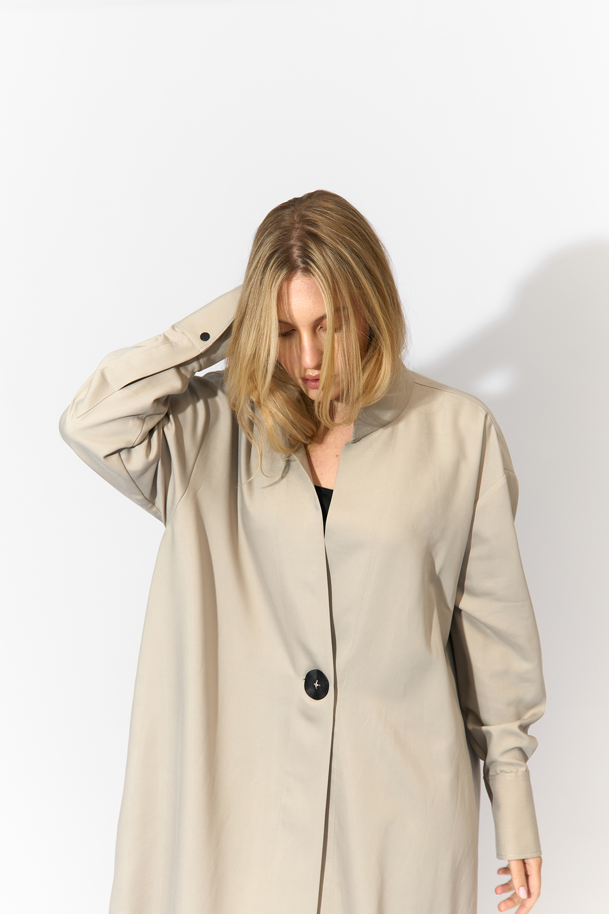 Butter feel fluid crepe shirt style jacket with cuffed sleeves and front button.