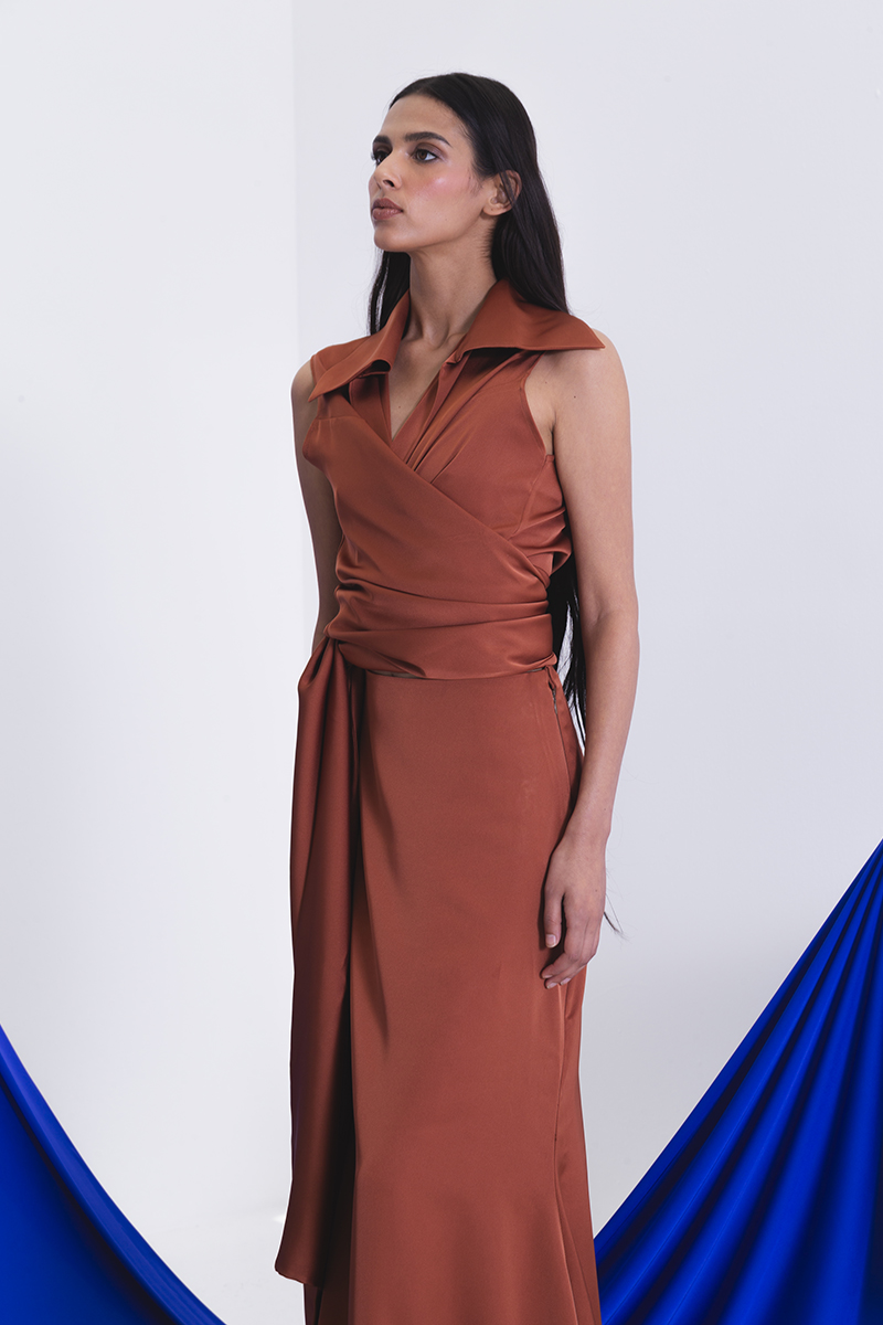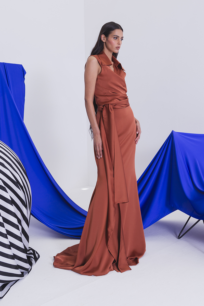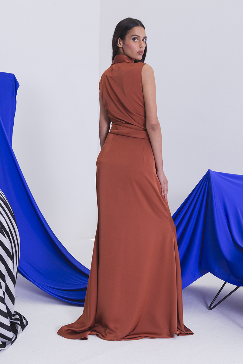 Mermaid style maxi crepe satin skirt. This skirt is designed to be fitted around the waist and upper hip area. This garment is made to order, allow 3 – 4 weeks for production and shipping.